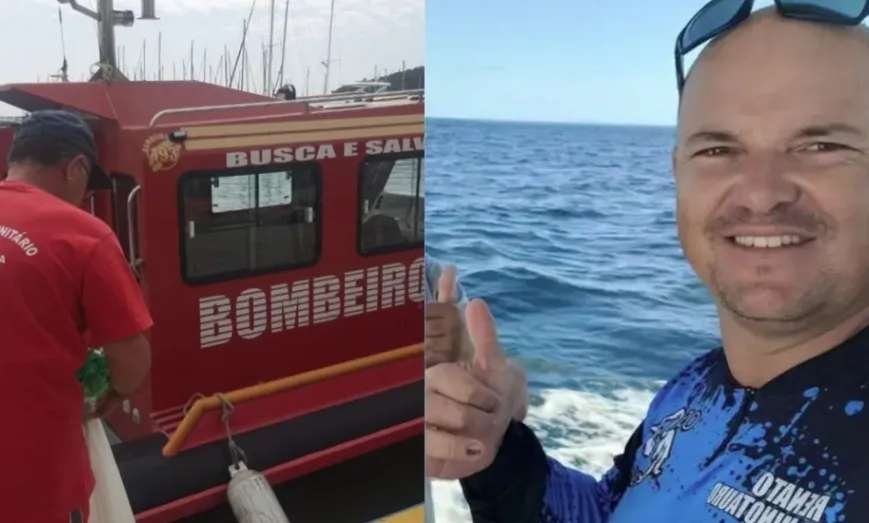 O Corpo de Bombeiros faz buscas pelo pescador Renato Eger, desaparecido no mar de Balneário Piçar...