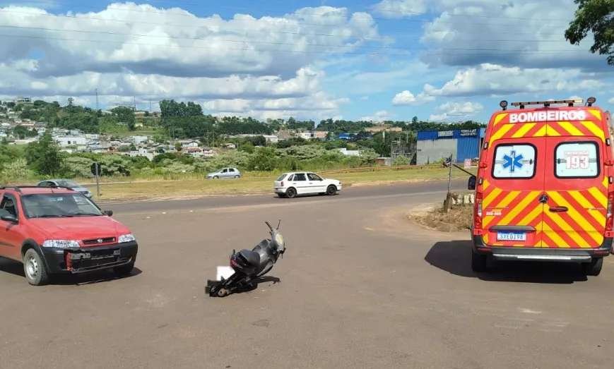 Um acidente de trânsito envolvendo um carro e uma motocicleta foi registrado na tarde deste domingo (25), por volta das 15h30, na SC-157, próximo ao Amma Atacadista, em São Lourenço do Oeste.