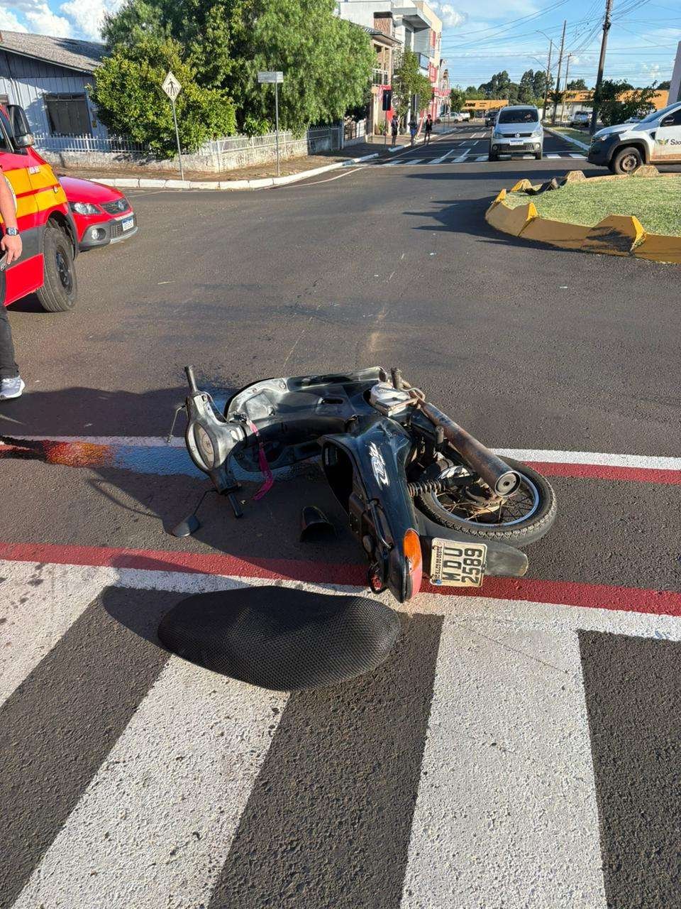 Na tarde de sexta-feira (12), uma mulher de 34 anos ficou ferida em um acidente de trânsito na Rua Leoberto Leal, no bairro Santa Catarina, em São Lourenço do Oeste (SC). Por volta das 17h56, a guarnição do 14º Batalhão de Bombeiros Militar foi acionada para atender a ocorrência, envolvendo uma colisão entre um veículo Hyundai HB20 e uma motocicleta Honda Biz.