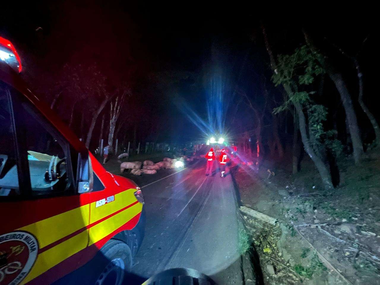 O condutor do caminhão, um homem, foi encontrado deambulando pela via, consciente e com sinais vitais estáveis, recusando encaminhamento ao hospital. A equipe realizou a sinalização e isolamento da rodovia para garantir a segurança no local até a chegada da Polícia Rodoviária Estadual de Iporã do Oeste, que assumiu os procedimentos da ocorrência.