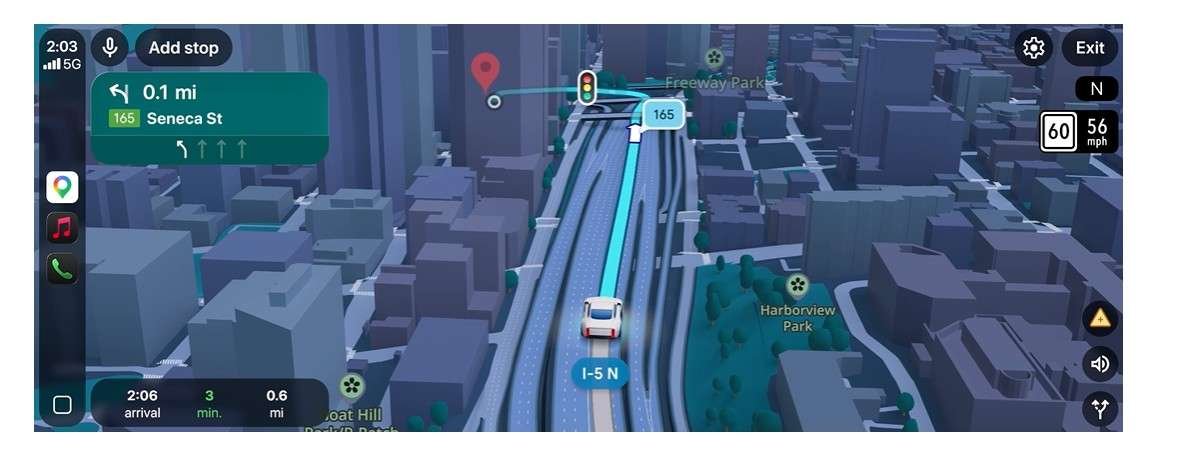 A tela do app passará a exibir uma visão 3D vívida do entorno, com prédios, viadutos, terrenos, construída a partir de imagens reais do Google Street View e de fotos aéreas processadas pelo Gemini.