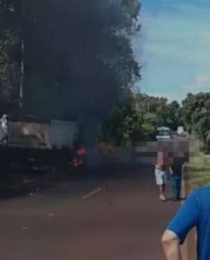 Com o impacto, o caminhão pegou fogo praticamente de forma imediata, sendo rapidamente tomado pelas chamas. A situação gerou momentos de tensão para quem presenciou o acidente, devido à intensidade do incêndio e ao risco de maiores proporções.