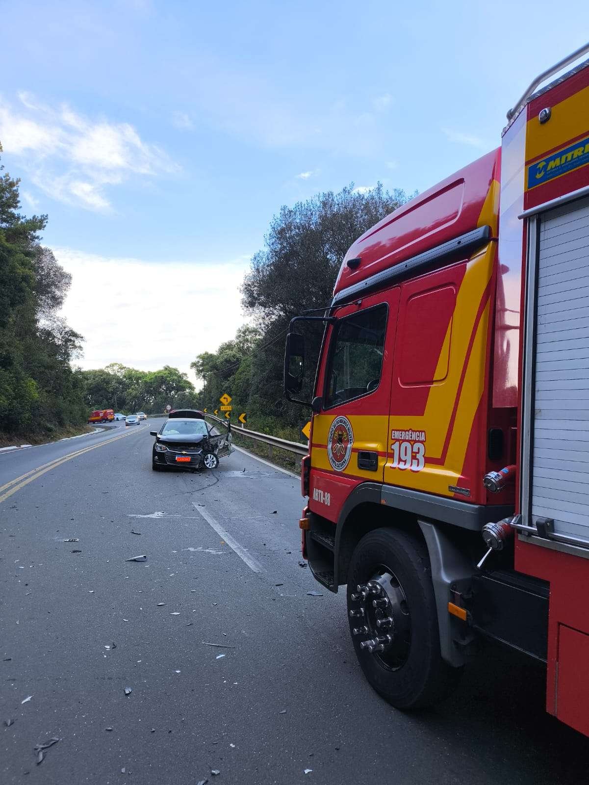 Os bombeiros imobilizaram o membro afetado, estabilizaram o paciente em maca rígida e o conduziram ao pronto-socorro para avaliação médica, permanecendo estável durante todo o transporte.