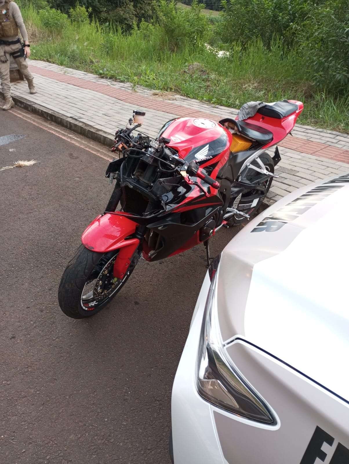 De acordo com o 6º Batalhão de Bombeiros Militar, a ocorrência foi registrada por volta das 17h40 e atendida pela viatura ASU-573. A vítima, uma mulher maior de idade, foi encontrada consciente e orientada, sentada às margens da via, já sem o capacete, aguardando atendimento.