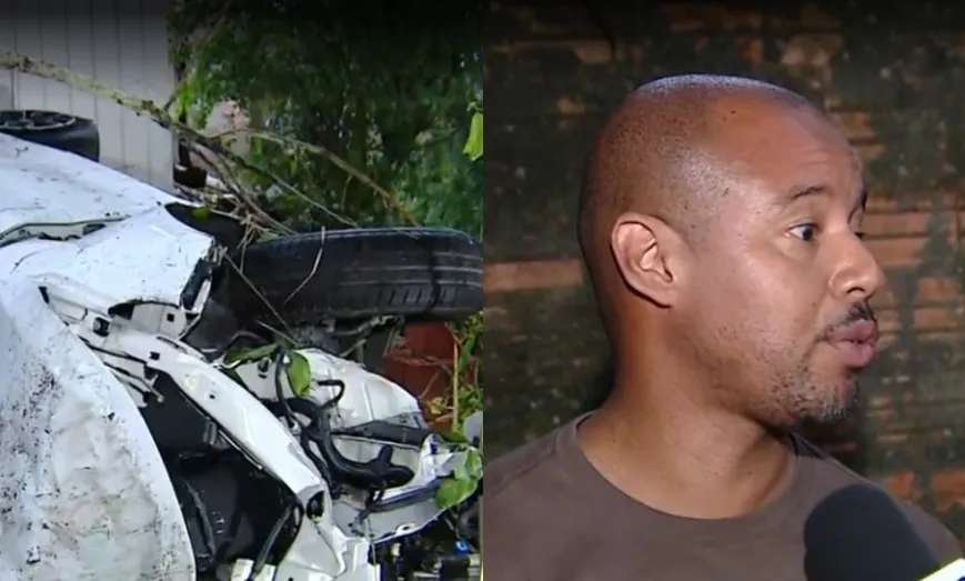 "A gente escutou, num primeiro momento, barulho. O carro bateu na árvore e, em seguida, veio a colidir na parede do nosso quarto, quebrando o guarda-roupa. Chacoalhou bastante a casa, porque é uma casinha de madeira. Logo em seguida, a gente saiu para socorrer o amigo. Chegamos aqui no fundo do terreno, ele já estava sentado aqui. Estava bem. Aparentemente, não tinha ferimentos graves, não estava sangrando", comentou o morador, que não se feriu.