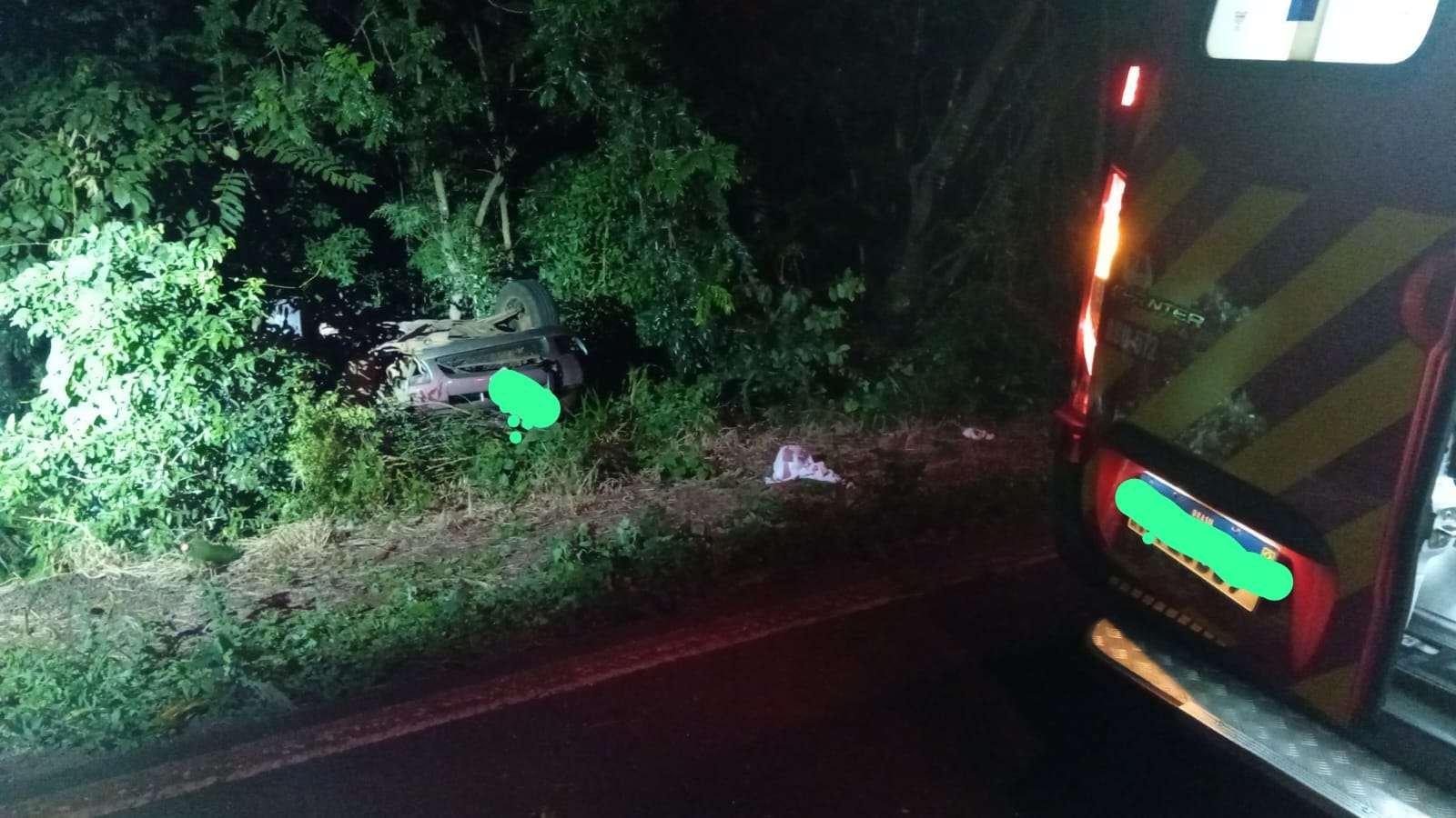 De acordo com o Corpo de Bombeiros Militar, a ocorrência foi atendida por equipes de São Miguel do Oeste por volta das 19h18. No local, foi encontrado um veículo Fiat/Palio Weekend fora da pista, capotado, com o teto totalmente em contato com o solo.