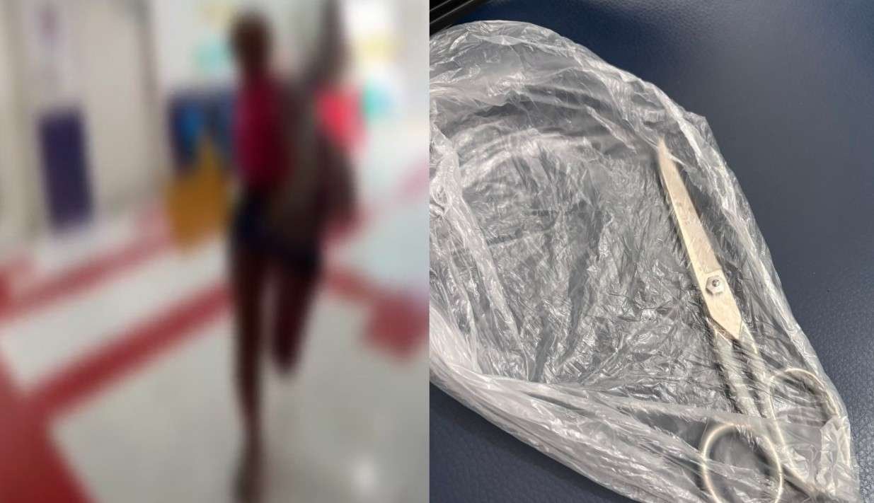 Em seguida, ela retirou uma tesoura da bolsa e ameaçou avançar contra a equipe. Imagens disponibilizadas pelo Jornal Razão mostram o momento em que a mulher joga a cadeira contra a servidora e a tesoura que foi utilizada nas ameaças foi recolhida.