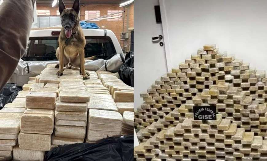 Durante a busca, a Polícia Federal abriu vários buracos no galpão e até na área externa, acreditando que a droga estava enterrada. Quando parecia não haver mais pistas, o cão da PM entrou em ação. Ele farejou e sentou ao lado de um tubo de PVC que saía do piso e levava até o jardim.