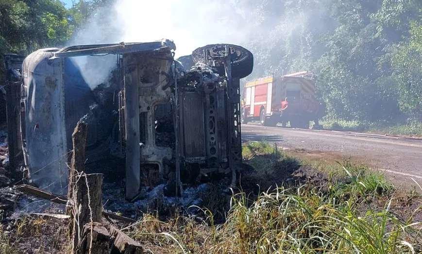 O atendimento foi acionado por volta das 14h30, quando a equipe de Quilombo se deslocou até o local com uma ambulância de resgate e um caminhão de combate a incêndio. Ao chegar, os bombeiros confirmaram que o veículo havia tombado às margens da rodovia e sido tomado pelas chamas.