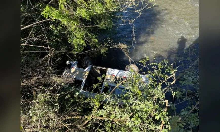 Uma kombi com 12 pessoas capotou e caiu em um rio de Santa Cecília, no Oeste de Santa Catarina, n...