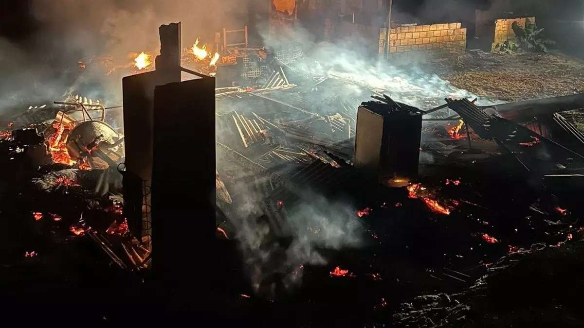 Fogo atinge galpão no interior, e ameaça residências próximas, em Riqueza