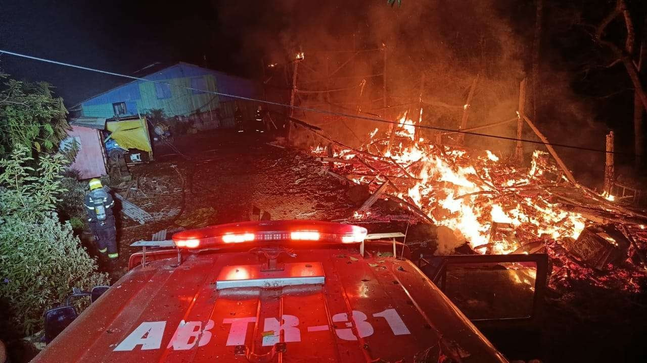 Uma casa foi completamente destruída pelas chamas na madrugada desta quinta-feira (2), na localid...