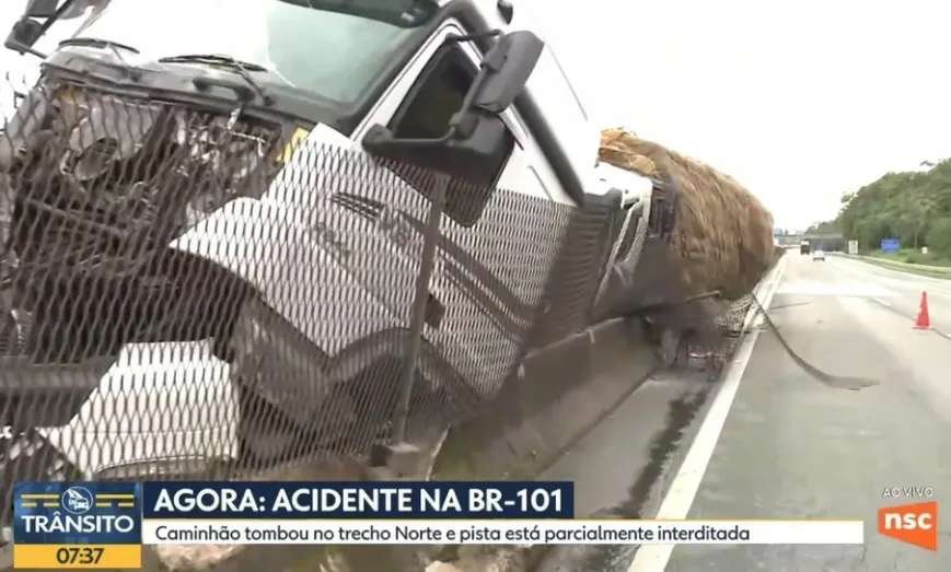 O sentido norte do km 9 da rodovia foi parcialmente interditado. À NSC TV, o motorista da carreta confirmou que cochilou. Ele não quis ser identificado. Vítimas tiveram escoriações leves.