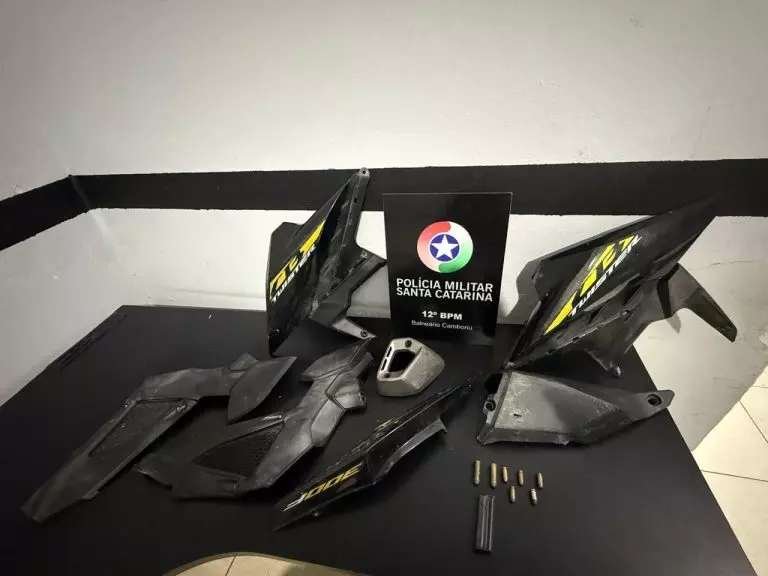 Ainda conforme a PM, em uma área de mata próxima ao local da abordagem, foram encontradas lonas e diversas peças de motocicletas. O adolescente informou que o local era utilizado para “esfriar” os veículos furtados. No mesmo ponto, também foi localizada uma motocicleta BMW com registro de furto ou roubo.