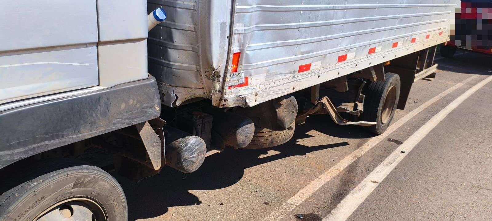 No local, os bombeiros constataram que se tratava de uma colisão lateral entre um veículo VW/Fox e um caminhão. O condutor do carro, um homem maior de idade, encontrava-se fora do veículo, consciente e orientado, mas relatava dor na região torácica.