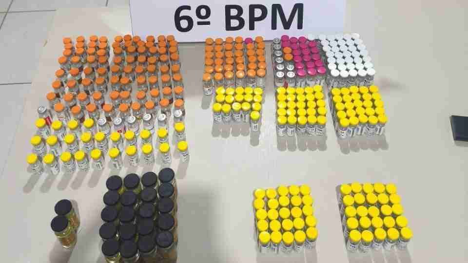 Após a contagem, foram apreendidas 327 ampolas de medicamentos para emagrecimento e 22 ampolas de anabolizantes.