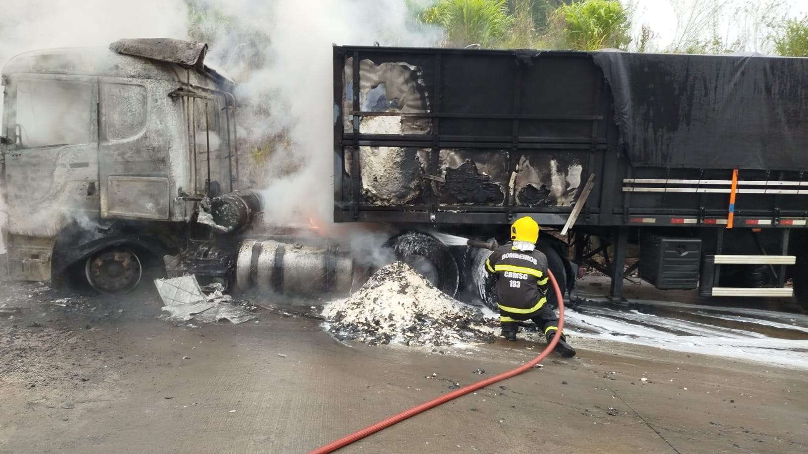 De acordo com o 14º Batalhão de Bombeiros Militar, a ocorrência foi registrada por volta das 07h17, após acionamento via COBOM 193. No local, as equipes confirmaram o incêndio em uma carreta Scania que transportava farinha de trigo.