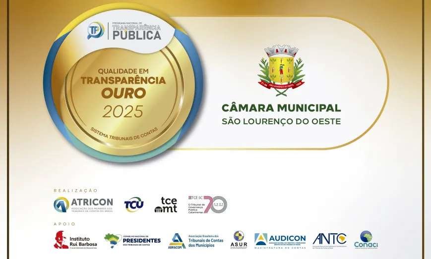 A Câmara Municipal de São Lourenço do Oeste atingiu, em 2025, seu melhor desempenho já registrado em transparência pública. O Legislativo recebeu o Selo Ouro do Programa Nacional de Transparência Pública (PNTP), resultado que integra o Ciclo 2025 da iniciativa nacional. A divulgação ocorreu durante o IV Congresso Internacional dos Tribunais de Contas (CITC), realizado no CentroSul, em Florianópolis.