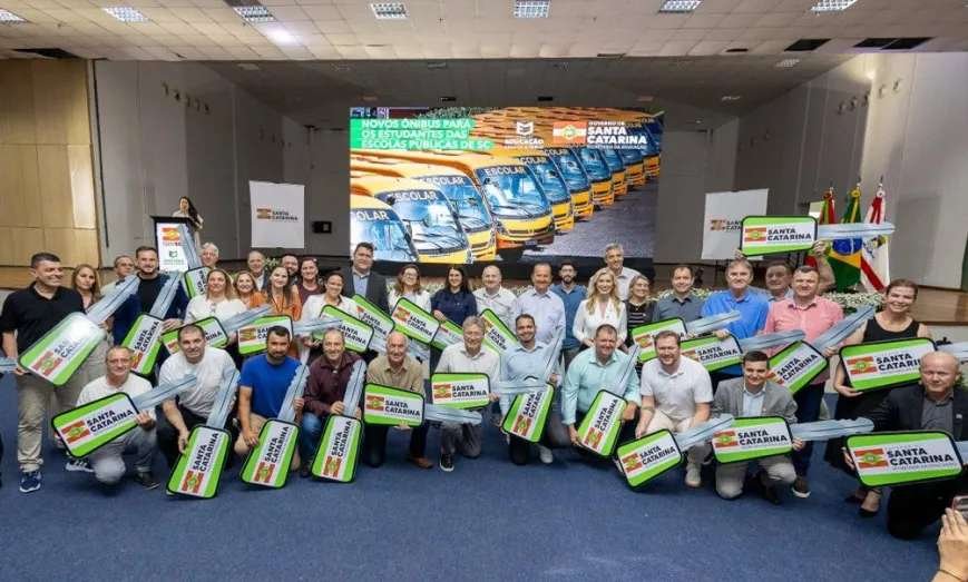 O Governo de Santa Catarina, por meio da Secretaria de Estado da Educação (SED), entregou 30 novos ônibus escolares para o transporte de estudantes das redes públicas de ensino de Santa Catarina nesta quarta-feira, 10. O evento que contou com a participação do governador Jorginho Mello marca a segunda etapa da iniciativa, que concederá 100 novos veículos até o início do ano letivo de 2026, pelo programa Escola Boa, do movimento Educação Levada a Sério.