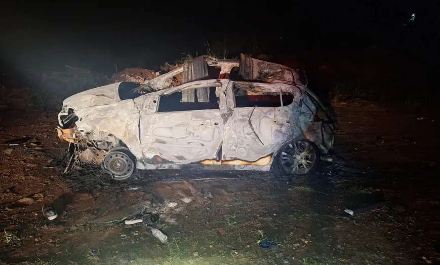 Durante o trajeto fora de controle, o veículo atingiu o carro de passeio que estava estacionado abaixo da ribanceira, mas sem ocupantes.