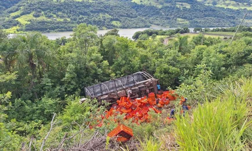A ocorrência foi atendida pela Polícia Militar Rodoviária (PMRv) por volta das 9h, quando os policiais encontraram o veículo, com placas de Irati, tombado em um barranco às margens da rodovia. Segundo relato do condutor, o caminhão despencou cerca de 100 metros abaixo do nível da pista.