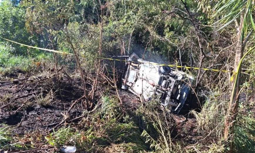 Um veículo pegou fogo após capotar nas margens da SC-480, em Ipuaçu, na tarde desta sexta-feira, dia 19. O acidente no município do Oeste catarinense ocorreu por volta das 15h30, no km 58,9 da rodovia, após o motorista desviar de um veado na pista.