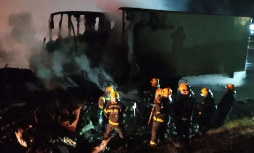 Ambos os veículos pegaram fogo e as equipes precisaram fazer o combate antes de resgatar as vítimas. No interior do carro, foram encontradas duas pessoas já sem vida, presas nas ferragens e com os corpos carbonizados.