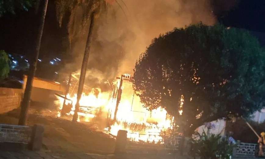 As chamas já estavam em desenvolvimento completo quando o Corpo de Bombeiros chegou ao local. Como havia uma casa muito próxima e não era possível acessar imediatamente o imóvel atingido, a equipe iniciou o combate de forma defensiva, priorizando evitar que o fogo se espalhasse para a residência vizinha.
